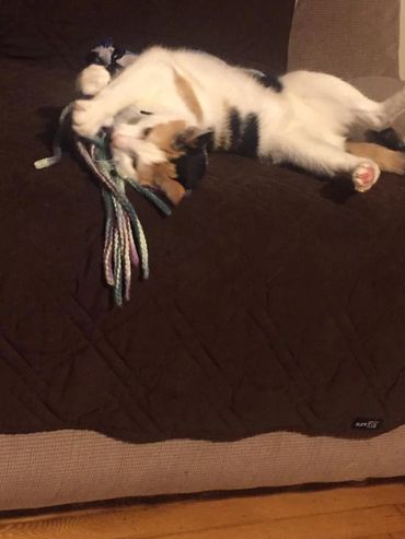 Meet our brand new CPO (Chief Purr Officer) Ruby-Rose. We conducted several preliminary interviews at our local shelter recently and Ruby-Rose decided to apply and was immediately offered the position. Luckily she accepted! Although she is very new to the staff she has already decided Murphy's Balls and Purrogies are her favorite toys.