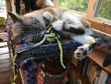 Olive is our General Manager and Expert Thief. She is in charge of stealing tools, and unscrewing any caps or bolts she can find. On a sunny day she can be found testing one of the Cat Mats in the window. Although born under a deck, she has completely left her feral beginnings behind and become a highlight of everyone's day.